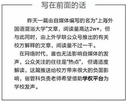 8月1日,上海外国语大学学生联合会下的学权中心官方微信号“上外学权”发表了这样一段话: