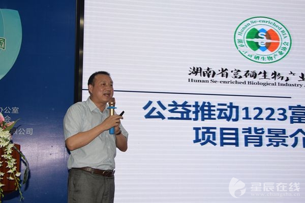 (杨俊就“1223”富硒工程的政策背景进行解读。图片均由记者 刘佳/摄)