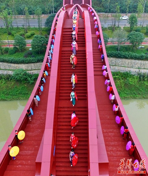 湘绣旗袍佳丽邂逅世界最性感大桥