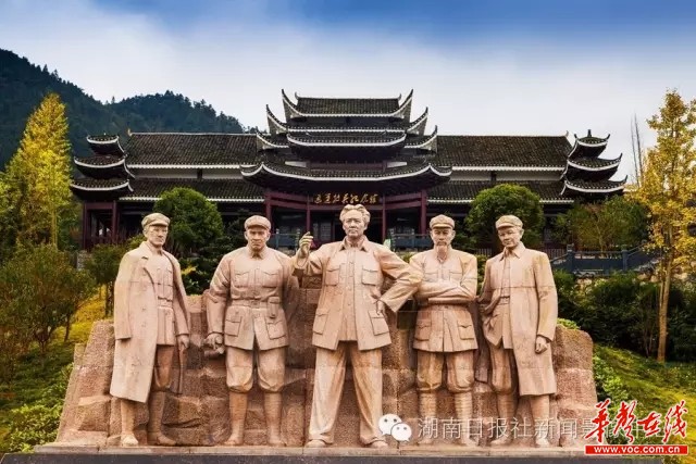 桑植县刘家坪白族乡的红二方面军长征出发地纪念碑。1935年11月19日,红二、六军团分别在刘家坪干田坝和瑞塔铺枫树塔举行誓师大会,任弼时、贺龙、关向应、萧克、王震等讲话,军委分会主席贺龙下达突围的命令。当晚主力部队出发,开始长征。谷臣湘 摄