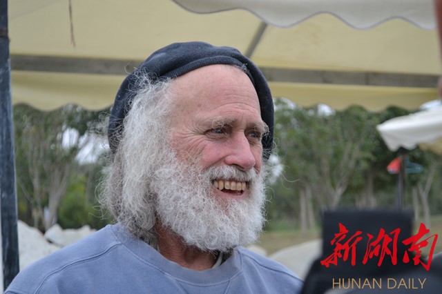 “你好,welcome!” 接着就是一声爽朗的长笑,每当有市民或者游客走进洋湖湿地公园国际雕塑园美国雕塑家约翰•费歇尔的工作区域,他都以这么一句中西合璧的招呼来迎接大家。