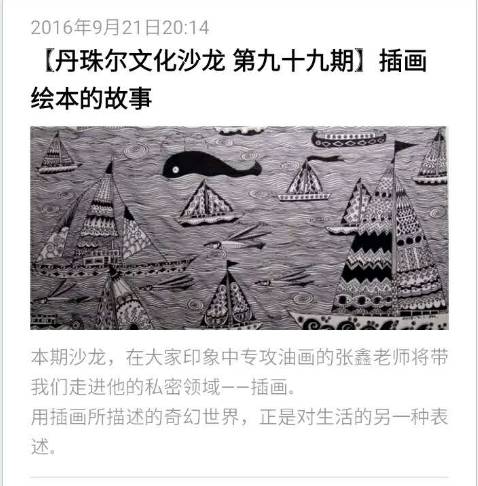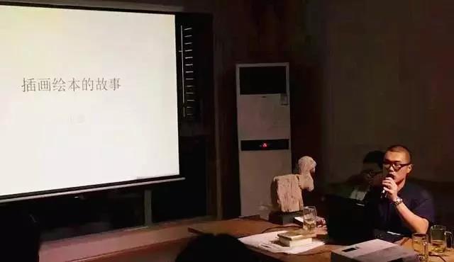 然后我就要讲到今天的主角,出生于1985年的青年艺术家张鑫。国庆前的一个周六,我去珠丹尔文化沙龙听了他的一场“插画绘本的故事”的讲座,从而认识了他。