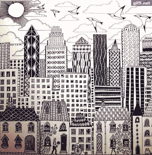 小小的纸张,大大的世界。张鑫说,他喜欢繁复,喜欢用细枝末节把画面填得满满的。这使得他的每一幅插画都非常耗时,“这么小的一幅都得画几天才能完成”。