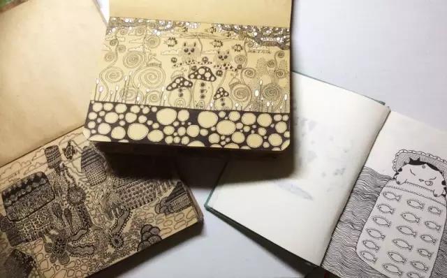 画满钢笔插画的小本子。
