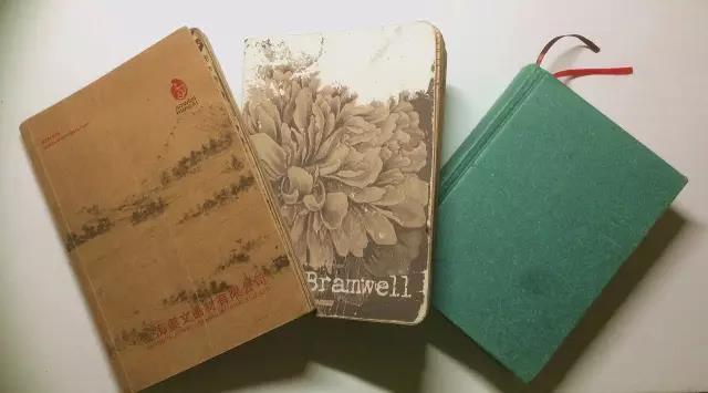 张鑫随身携带,画满插画的三个小本子,从左至右,尺寸依次是12.5x17.5cm,12x16cm,10x14cm。