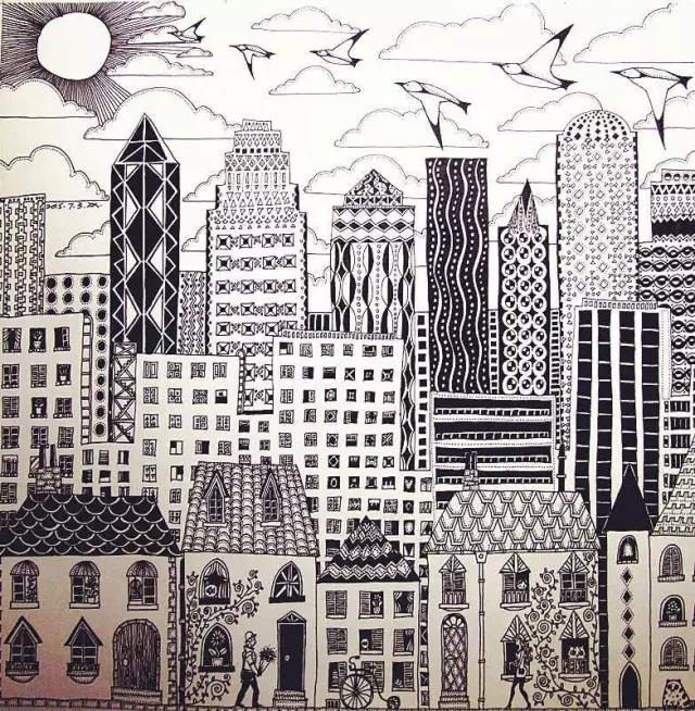 风格也不是一成不变,近两年他也尝试简洁。在这些作品里面,风格越来越符号化,不见了以前的装饰性,倒有点像漫画了: