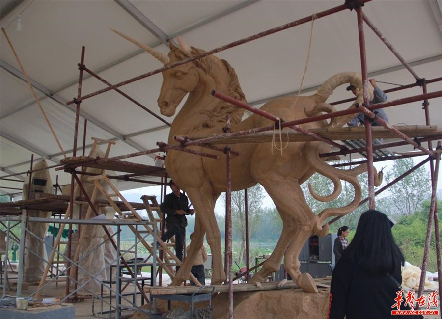 泥土裹身,英姿勃发,一匹高近5米的骏马矗立雕塑创作现场。这是著名雕塑大师王刚的作品“盛世神骏”。 在现场,记者也感受到了王钢的“职业精神”,为了不让作品留有遗憾,他始终坚守在雕塑现场,放弃了外出采风的机会。“作品第一,倘若雕塑留有瑕疵,恐难以补救。”
