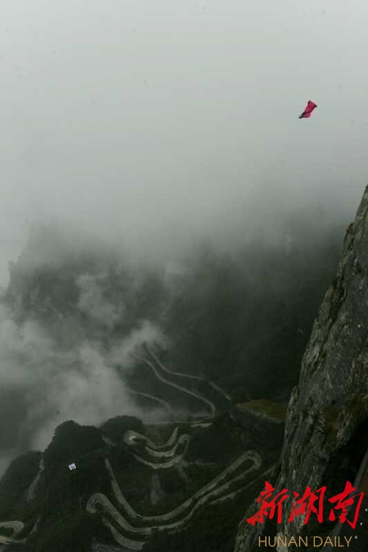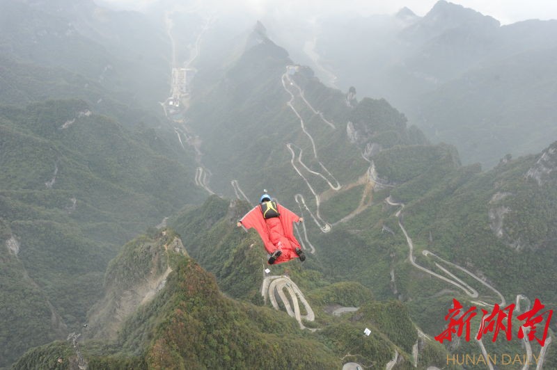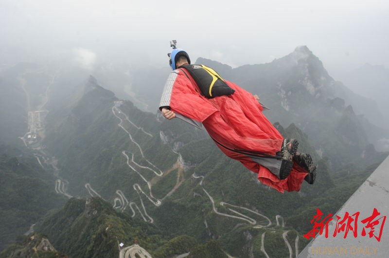 10月13日,运动员在进行计时排序赛。 当天。2016第五届红牛翼装飞行世锦赛在张家界天门山举办,来自全球九个国家和地区的16位顶级翼装飞行运动员将挑战空中无动力翼装飞行的竞速极限。中国运动员张树鹏首次参加比赛。湖南日报记者郭立亮 通讯员丁云娟摄影报道
