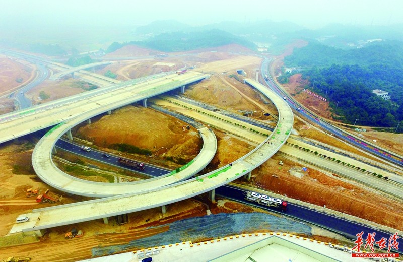 10月12日,长沙市万家丽路与绕城高速互通项目建设现场,桥梁主体完工后项目的变形苜蓿叶互通全貌完全呈现。该项目2014年10月底开工,本月初桥梁主体顺利完工。目前,承建方中国中铁正抢抓路基建设,预计11月底可全面竣工达到通车条件。记者 田超 通讯员 刘慧璋 摄影报道