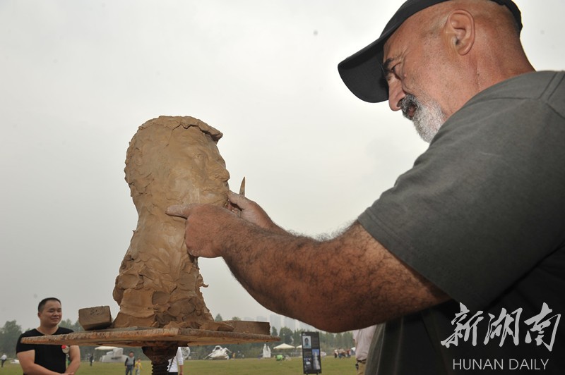 华声在线10月7日讯(记者 田甜 摄影记者 唐俊)国庆7天长假,来长沙参加2016中国(长沙)雕塑文化艺术节的各国雕塑家们却一直在紧张地雕塑创作之中,一天都没有休息。今天是长假的最后一天,雕塑家们又集体出动,为环卫工人代表与网络甄选出的模特进行了一对一的现场塑像,让观众们近距离体验了雕塑制作的魅力。