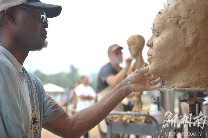 活动现场,纳姆迪·奥孔库沃、约翰·费歇尔、理查德·麦克尼尔等7名来自美国、加拿大、尼日利亚等国家的雕塑家们一字排开,一边细细观察着模特们的面部特征,一边调整着手中塑像的形状。他们的手指好像有神奇的魔力一般,普通的泥巴块经他们手一捏一揉一敲,就变成了栩栩如生的塑像,让现场的观众们大开眼界。