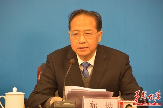 长沙市食药监局局长、食安办主任郭塨发布新闻。