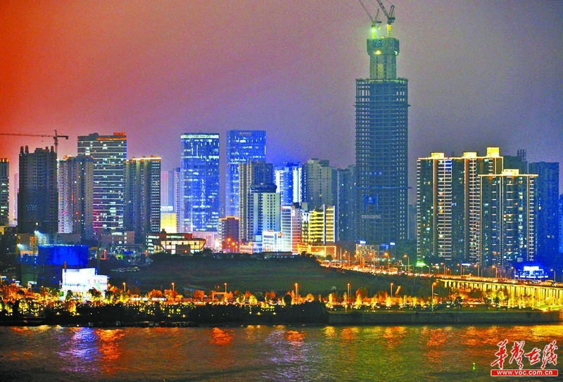 11月23日晚,湘江长沙段沿岸高楼霓虹闪烁,星城夜景分外妖娆。当天,受冷空气影响,长沙城区一扫连续多日的雾霾天气。