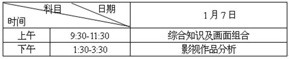 考生凭《专业考试证》、第二代居民身份证于2016年12月30日至31日到湖南艺术职业学院(长沙市岳麓区麓山南路153号)报到缴费,考试时间为2017年1月5日至7日,其中笔试时间统一安排如下: