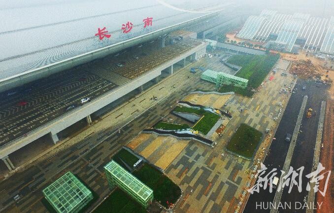 11月15日,长沙火车南站东广场,施工人员在进行地砖铺设的扫尾施工。该广场净用地面积7.48万平方米,总建筑面积16.9万平方米,整个东广场分为地下静态交通及换乘广场、地上疏散及景观广场两大部分。目前,东广场区域都已基本建成,进入后续扫尾阶段。预计年底前,东广场可正式投入使用。