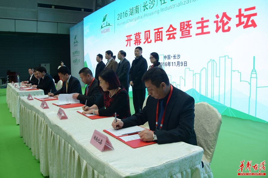 开幕式上,政府与企业签署装配式建筑战略合作协议。