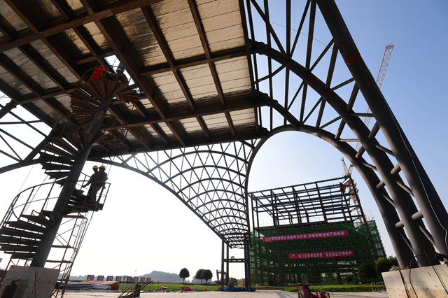 12月27日,长沙黄花综合保税区,施工人员在对卡口钢结构进行刷漆及楼板铺设。该保税区于5月31日经国务院正式批准设立,规划面积199公顷。其中一期开发建设范围为机场高速以北、黄金大道以西,用地规模为77.74公顷,主要包括通关大楼、综合大楼、北部口岸作业区、北卡口、首期标准厂房和保税仓库等。日前,通关大楼及卡口主体钢结构顺利完工。记者 田超 摄