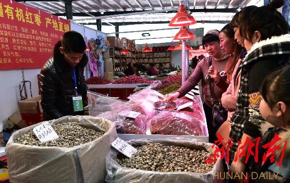 12月8日,市民在农博上选购农产品。为期12天的武陵山片区(吉首)第四届农博会7日在吉首市乾州农贸市场开幕,120余家龙头企业和当地合作社的1000多个优质农产品参展,助推武陵山片区农业产业发展。