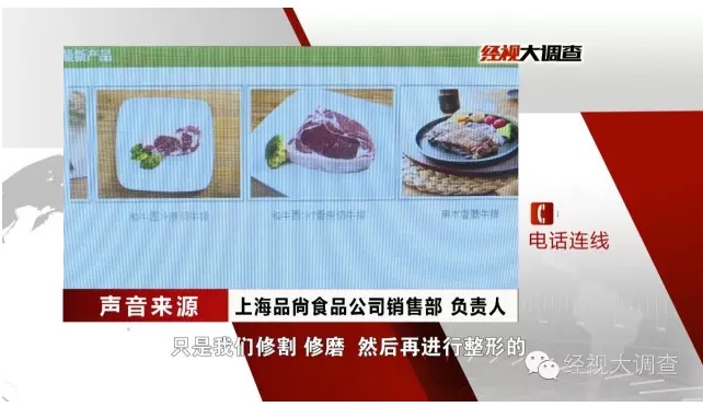 “金牛角王”牛排由“上海品尙”直供,声称只经“整形”