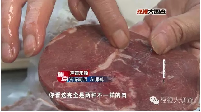 而为了证明自己的说法,陈经理拿出一块牛排在简单解冻之后,让记者辨别。