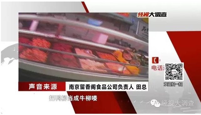 而这一检测结果,恰好印证了昨天节目里,记者调查超市”牛排“竟是猪排加添加剂”组合“造假时,南京留香阁食品公司负责人曝出的行业潜规则:鸭肉能当牛肉卖!