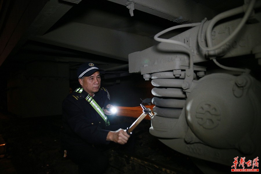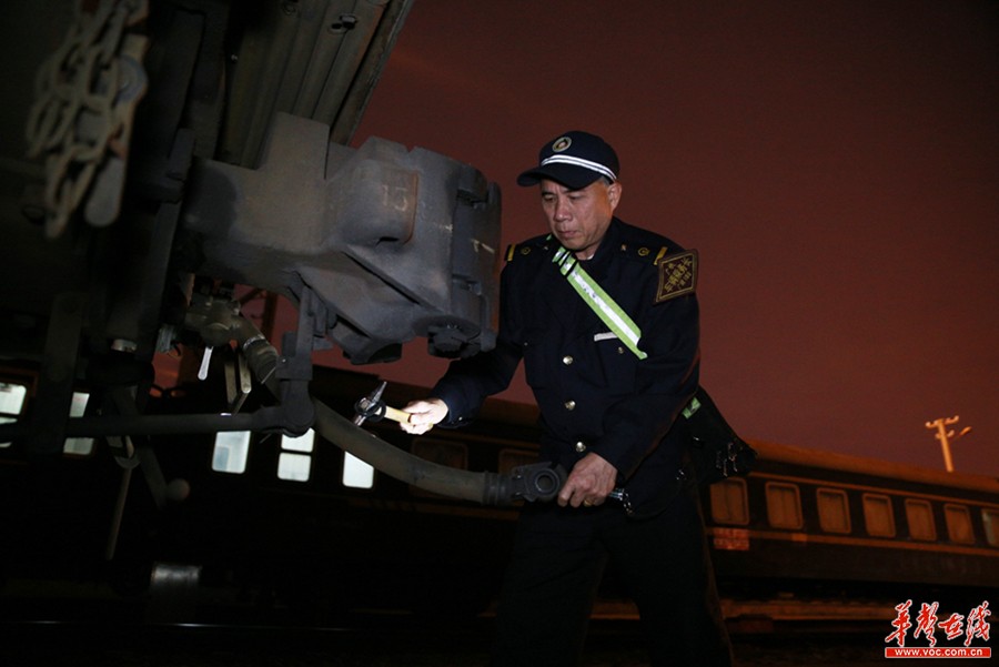 列车到达湖北宜昌东站已是晚上。陈祎勇称由于南北地区温差大,夜间温度较低,车钩、风管容易发生故障,因此需要特别认真地检查。