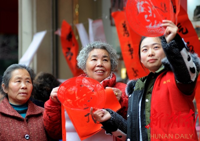 1月15日,嘉禾县珠泉镇晋屏社区,居民在免费领取春联。春节即将来临,该县开展“送春联进万家”活动,组织书法家走进社区、乡村向群众宣讲春节传统民俗文化知识,免费书写“福”字、春联,为群众送去新春文化大餐。