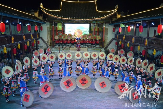 1月6日晚,江永县兰溪瑶族乡勾蓝村,演员在为游客表演原生态民俗节目。该村是省级扶贫开发重点村。去年,村民自发成立旅游开发公司,组建民俗文化表演专业合作社,引导村民抱团发展乡村旅游产业。村民日出“下地”种养,日落“登台”演出,获得了较好的经济效益,全村70户贫困村民全部实现脱贫。 田如瑞 何云雄 摄影报道