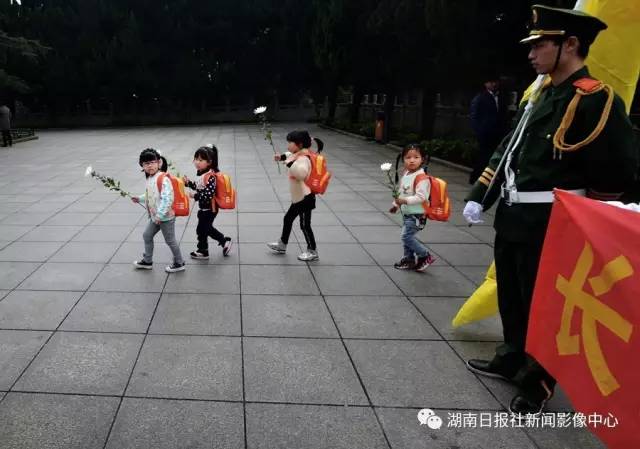 3月31日,湖南烈士公园,几名小朋友前往烈士纪念碑敬献鲜花,悼念英烈。李健/摄