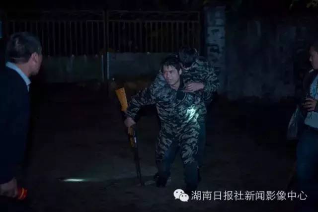1月5日晚,有两个外地人(中)持枪在林中打鸟,道县白马渡镇白马渡村吴荣三(左)与四儿子(右)赶去阻止。唐俊/摄