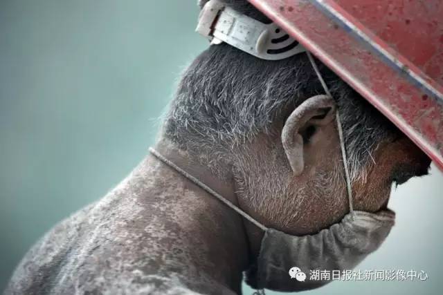 8月21日,工作不到两个小时,来自辰溪县的风炮工人舒华银脸上和头发上已有厚厚一层粉尘。湖南吉首G209复线改造工程工地,200余名风炮工人日夜奋战。李健/摄