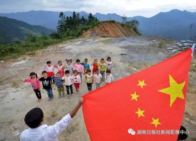 9月7日早上,溆浦县北斗溪镇来凤村凤型小学,张在目在向学生们讲解国旗知识并举行升国旗仪式。1968年出生的张在目是学校唯一的老师,他双手残疾,没有了完整的手掌,但已在这里执教20年。李健/摄