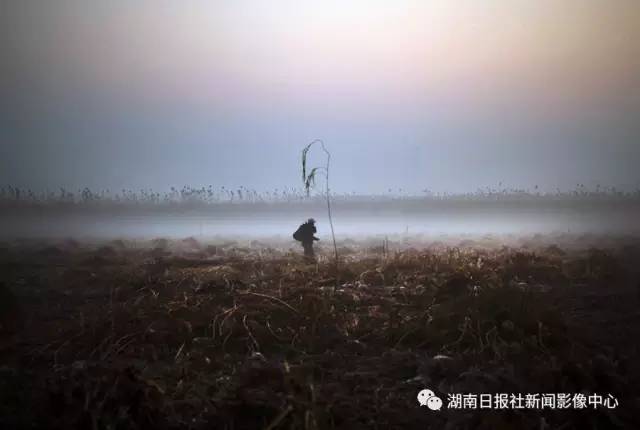 12月8日,晨雾未散,洞庭湖畔,一名砍苇人匆匆赶往工地。 李健/摄