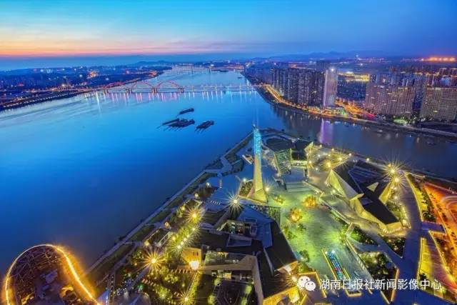7月23日,长沙市开福区,夜色下的滨江文化园。唐俊/摄