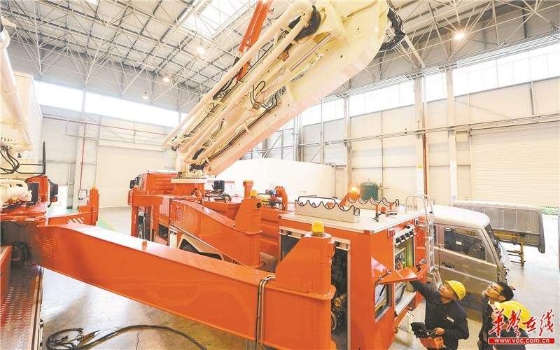 2月8日,三一重工长沙产业园内,技术人员正对高喷射消防车进行调试。当天,新下线的三一重工38米大跨度高喷射消防车正式进入安装调试阶段。该消防车夜间灭火能清晰地看到火场内的情况、可大跨度跨障碍救援、全臂架可折叠、远距离遥控精准灭火。湖南日报记者 徐行 通讯员 黄艳 摄影报道