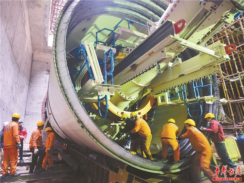 2月4日,长沙地铁4号线碧沙湖站的建设工地,施工人员在对盾构机设备进行调试。春节长假期间,长沙共有1000多名地铁工人放弃与家人团聚,坚守工地为长沙轨道交通建设加油干。