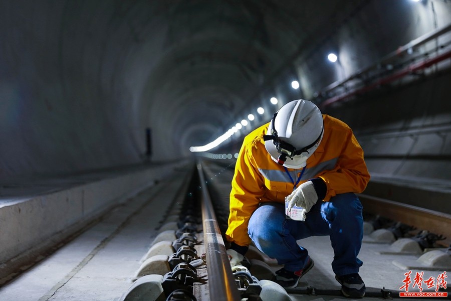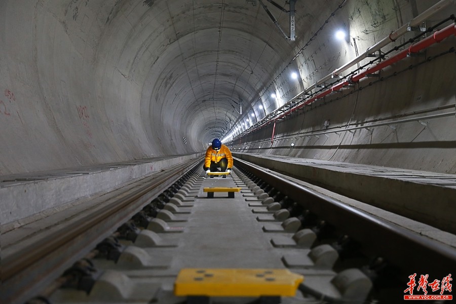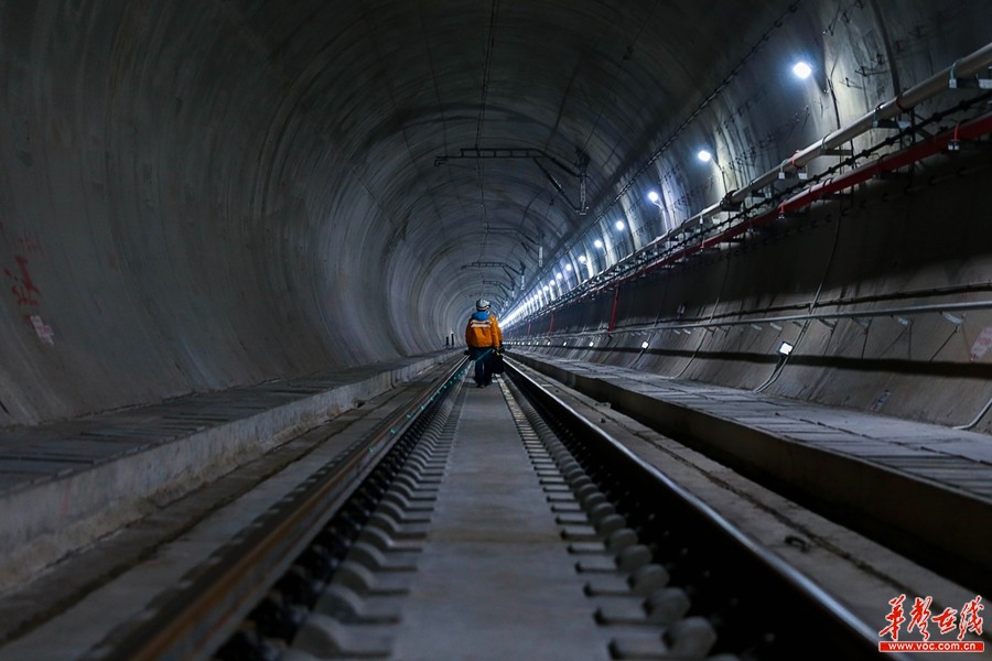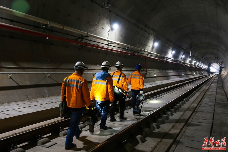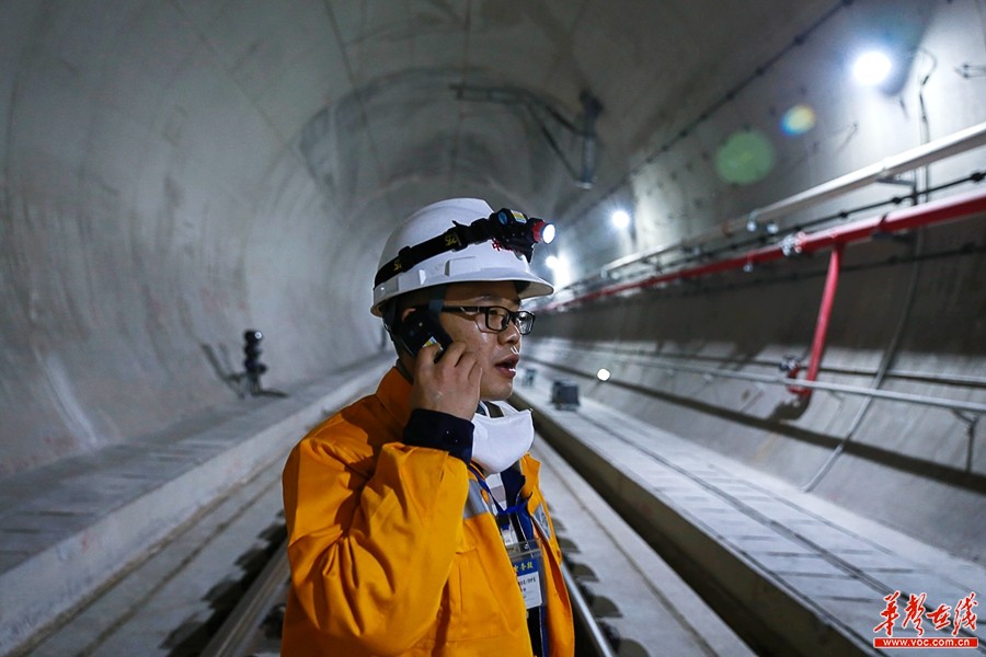 树木岭隧道,位于长株潭城际线K1+786公里至K14+732公里,全长12.9公里,隧道内有632个箱盒,32架信号机,4.3万个电缆槽盖板,距离地面38米。34岁的信号工长冯果曾全程参与长株潭城际铁路的前期建设,现又作为一名“信号医生”为城际信号设备“把脉体检”。