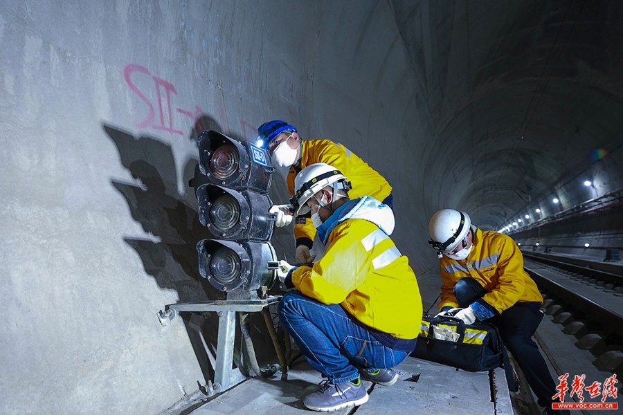 华声在线2月4日讯(通讯员 王极 记者 龙腾)长株潭城际铁路的候车大厅,熙熙攘攘的返乡旅客,有的推着行李箱,有的提着礼品盒,人们的欢声笑语在大厅回荡。而在地下38米的作业现场,广铁集团公司长沙电务段的“信号医生”正在树木岭隧道洞井站月台上准备开启“地下工作”模式。