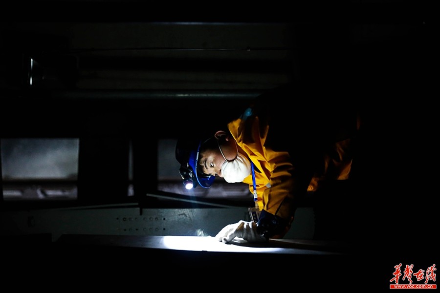 0点整,天窗修调度命令下达。所有“信号医生”全副武装,戴上头灯和口罩,在湖南省境内唯一有联锁设备的地下站——洞井站依次进入隧道,开始了数小时的“地下工作”。隧道内,灰尘大,湿度大,空气较地面稀薄,他们不仅要克服这些困难,还要打起十二分精神,对每一个设备零部件进行检查,确保信号设备的安全。