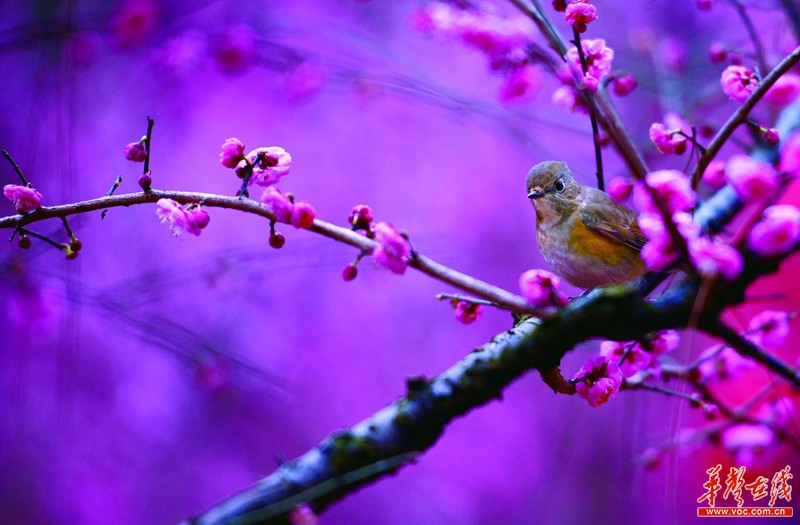 2月3日是二十四节气中的“立春”,长沙各大公园内的梅花竞相绽放,春意浓浓,美不胜收。湖南省森林植物园,一只小鸟在梅花丛中,一只小狗在梅花丛中欣赏春色,游客们在梅花林中自拍留念。