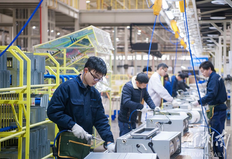 3月24日,宁乡经开区长沙格力暖通制冷设备有限公司,工人在总装生产线上忙碌。 傅聪 摄