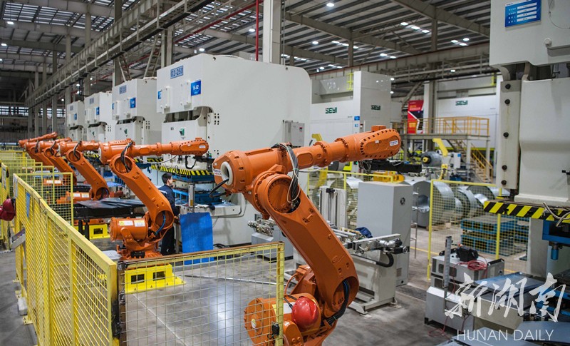 3月24日,宁乡经开区长沙格力暖通制冷设备有限公司的机械化生产线。 傅聪 摄