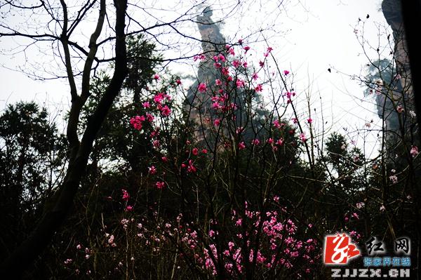 红网张家界分站3月20日讯(通讯员 邓道理)3月20日中午,几名自助游客在张家界武陵源风景名胜区龙凤庵森林游道旁,被一片妩媚的紫玉兰花深深吸引。