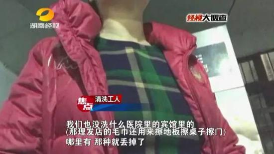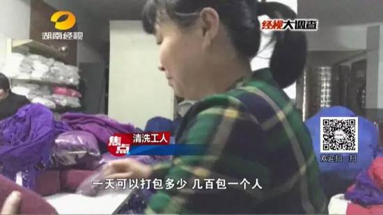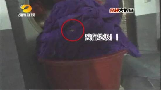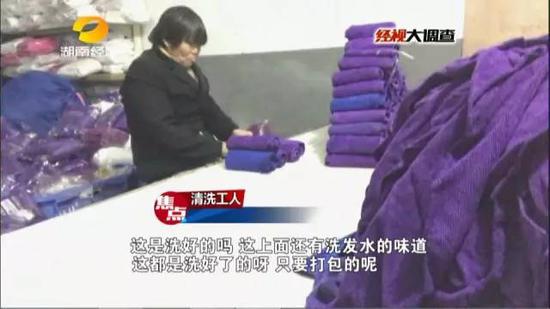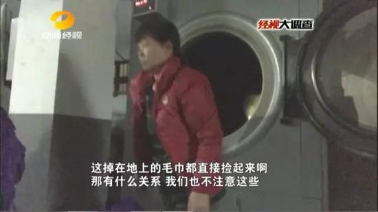 洗好烘干的毛巾里竟然还有不少垃圾,这让记者大跌眼镜!可眼前这几名工人却视若无睹,脏毛巾照样装进了包装袋里。