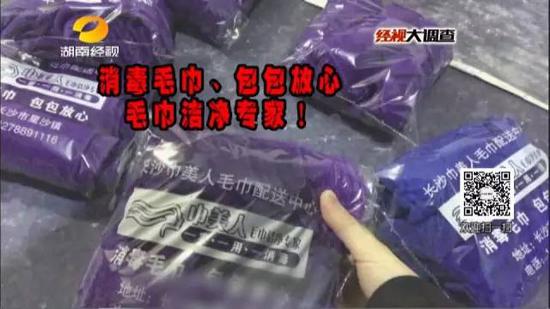 在现场,记者也没见到任何消毒设施设备。美容美发店的脏毛巾就这样经水洗烘干再打包,摇身一变成了这种“长沙巾美人毛巾配送中心”的“消毒毛巾”,包装上还大言不惭打着“消毒毛巾、包包放心、毛巾洁净专家”的宣传语。
