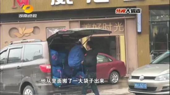 湘A5D38T面包车司机将五大袋“消毒毛巾”送进了这家威尼国际护肤造型店。