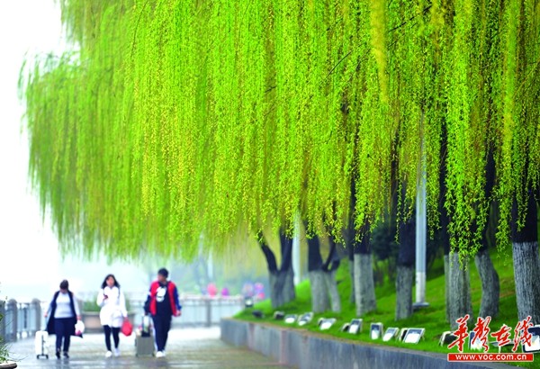 3月20日,游客在长沙市橘子洲景区欣赏美丽春色。当天是二十四节气中的“春分”。春分至,预示着严寒已经过去,南方一带的雨水也开始逐渐增多。 记者 李健 摄
