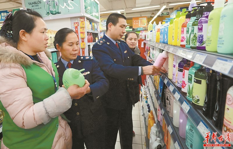 3月14日,市场监管执法人员在检查超市商品。连日来,通道侗族自治县开展“3·15”打假执法行动,对加油站、农资商店、超市等与消费者生活密切相关的生产经营单位进行“拉网式”检查。目前,已查处27起涉嫌假冒伪劣商品案件,案值60余万元。 刘强 杨学文 摄影报道
