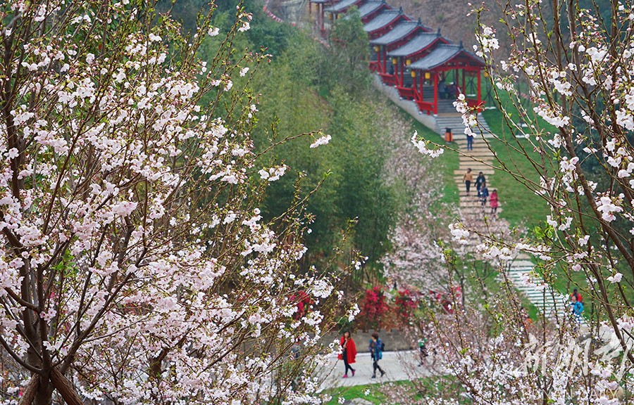 3月11日,长沙县果园镇浔龙河樱花谷内,椿寒樱,牡丹樱,日本早樱,郁金樱,大岛樱等30多个品种、逾万株樱花竞相开放,美不胜收,游客漫步花海尽情享受这醉人景致。湖南日报记者 徐行 通讯员 宋雯 摄影报道