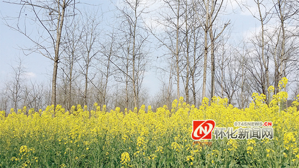 离沅河镇不远处的沅河村有个斯机岔湿地景区,听当地人说现在洲上的油菜花开得正好,所谓来得早不如来得巧,记者一行人便决定前往斯机岔赏花,方不负这大好春光。沿着河边缓缓行驶了3 公里,我们在一座窄桥旁停了下来,这里就是通往斯机岔的小路。